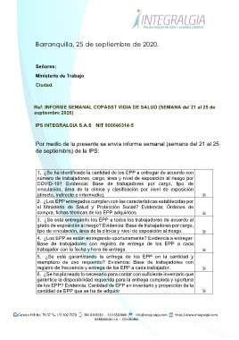 Ref: INFORME SEMANAL COPASST VIGIA DE SALUD (SEMANA del 21 al 25 de