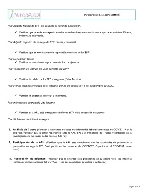 prevención, entrega de EPP, Participación en las reuniones del COPASST, Capacitación al COPASST, entre