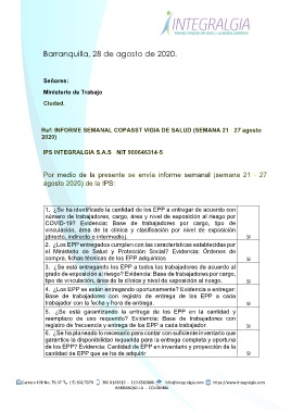 Ref: INFORME SEMANAL COPASST VIGIA DE SALUD (SEMANA 21 - 27 agosto