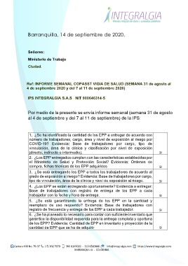Ref: INFORME SEMANAL COPASST VIGIA DE SALUD (SEMANA 31 de agosto al