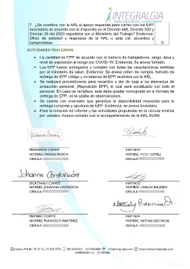 7. ¿Se coordinó con la ARL el apoyo requerido para contar con los EPP