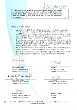 7. ¿Se coordinó con la ARL el apoyo requerido para contar con los EPP